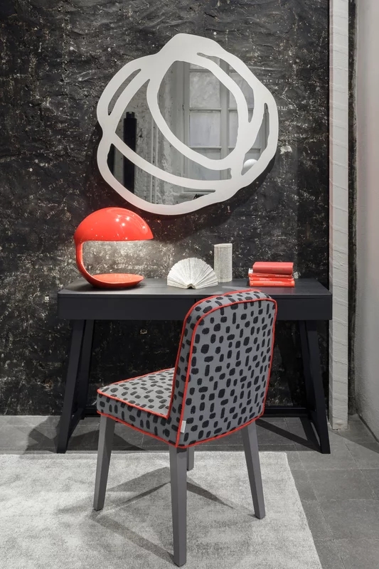Famiglia di specchi a parete disponibili in due dimensioni, Sweet 97/98 sono caratterizzati da confini arrotondati ed irregolari. Si tratta di specchi con grande forza espressiva e decorativa grazie al motivo serigrafato nero o bianco che disegna sulla superficie cerchi e forme irregolari che si intersecano tra di loro, in un gioco di sovrapposizioni di linee.