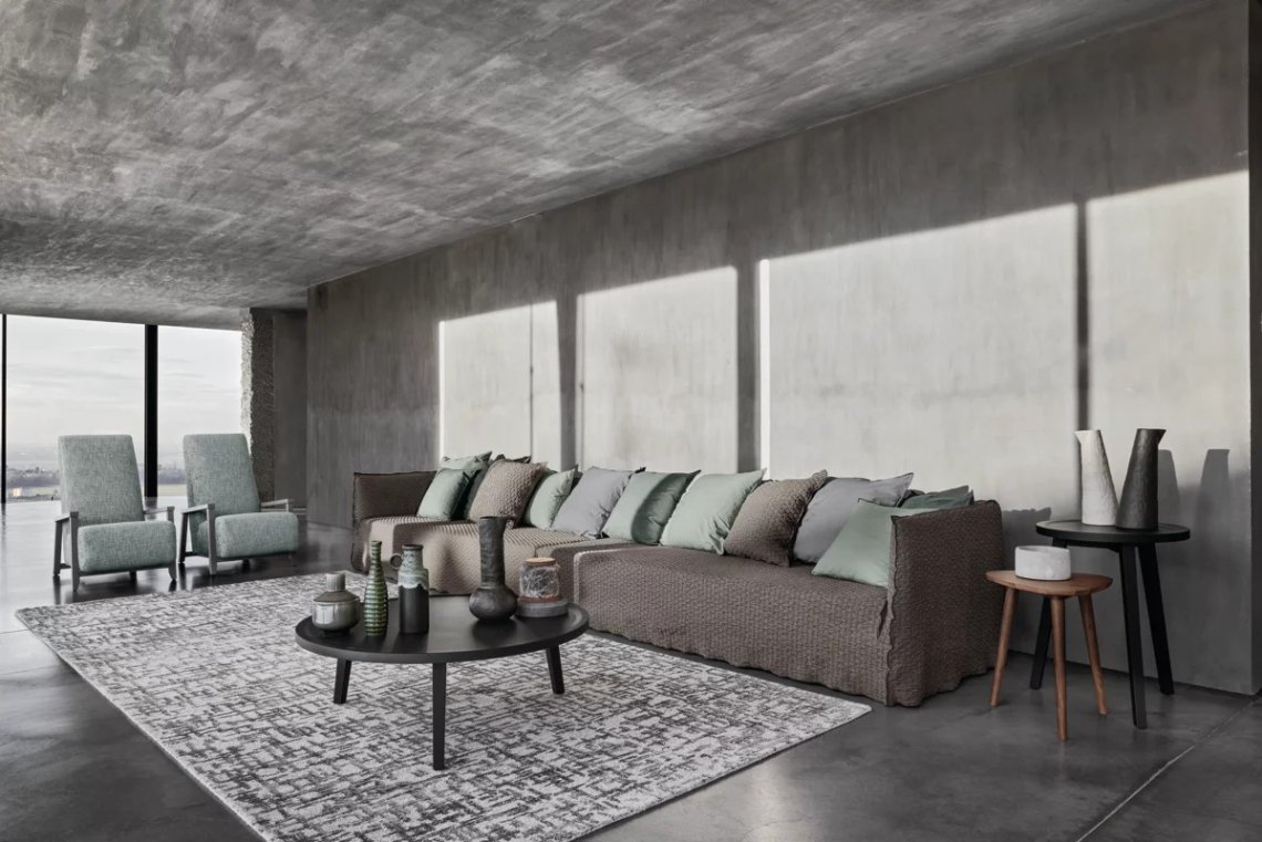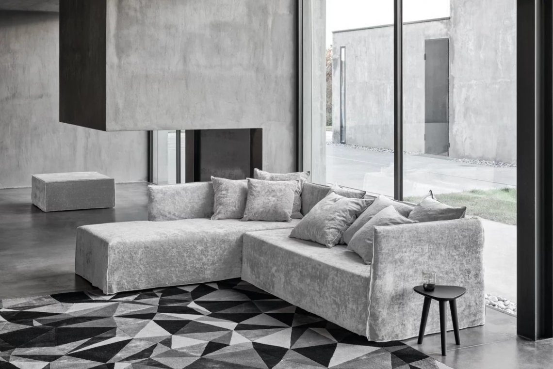 Elementi componibili di varie forme e misure, danno vita a tutte le possibili composizioni di Ghost, un divano che si sviluppa attorno ad una leggera scocca dai volumi essenziali. Realizzato da una struttura minimale e sottile imbottita in poliuretano espanso, Ghost contiene soffici cuscini volanti in misto piuma. La caratteristica principale dei divani Ghost è il rivestimento sfoderabile, una housse oversize il cui profilo è sottolineato dalle cuciture a vista, che permette ai prodotti di svestirsi e rivestirsi in un baleno. Si tratta di un progetto tessile che cambia facilmente volto, permettendo di passare da un look formale ad uno informale con facilità e velocità.