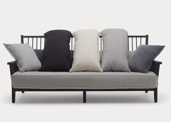 Divano a tre posti Gray 03 dalle linee squadrate e lineari evoca lo stile classico nordico. Il piacevole contrasto tra l’essenzialità della struttura in noce Canaletto verniciato naturale, rovere sbiancato o rovere laccato bianco, grigio, nero, oceano o tortora, e la morbidezza dei cuscini, conferisce al prodotto un piacevole equilibrio visivo.