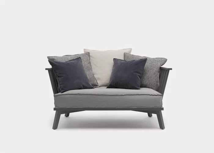 Il divanetto GRAY 04/05 è caratterizzato da linee sinuose che evocano lo stile classico nordico. Alla seduta ampia e profonda si abbina uno schienale avvolgente caratterizzato da listelli in legno. Una lavorazione che sottolinea la maestria artigianale di Gervasoni creando un gioco di pieni e vuoti. Si distingue per il piacevole contrasto tra l’essenzialità della struttura, in noce o rovere, e la morbidezza dei cuscini volanti per un comfort accentuato.