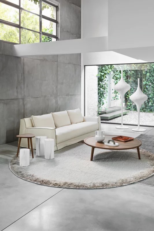 La struttura in legno massello con scocca in poliuretano espanso si unisce ad ampi cuscini di seduta e di schiena realizzati con un soffice strato di piuma d'oca canalizzata, con il recupero della tecnica tradizionale dell'uso di molle insacchettate nei cuscini seduta, per un comfort accentuato. In tutte le sue versioni, la collezione LOLL è completamente e facilmente sfoderabile.