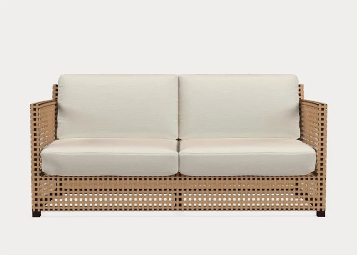 Una struttura dalle linee squadrate ma di grande leggerezza visiva caratterizza il la famiglia di divani WK, disponibili da due o tre posti. Una proposta dal fascino classico ed esotico allo stesso tempo con struttura in faggio rivestita da una texture realizzata con intreccio in pergamena naturale, che accoglie morbidi cucini volanti di seduta e di schienale.