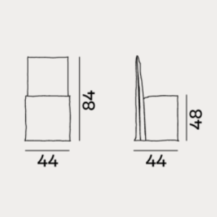 Sedie con e senza braccioli, hanno una struttura minimale, con forme geometriche pulite e definite. La famiglia di sedie Ghost ha una struttura in legno che si unisce a imbottiture in poliuretano espanso. La caratteristica principale delle sedie Ghost è il rivestimento sfoderabile, una housse oversize il cui profilo è sottolineato dalle cuciture a vista, che permette ai prodotti di svestirsi e rivestirsi in un baleno. Si tratta di un progetto tessile che cambia facilmente volto, permettendo di passare da un look formale ad uno informale con facilità e velocità.