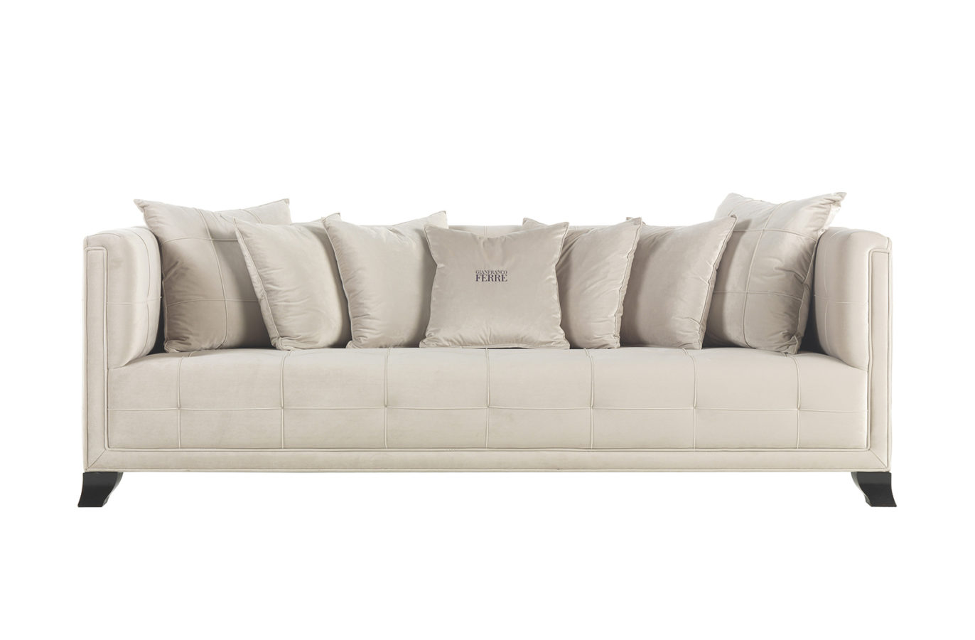 4-seater sofa with structure in beech wood and foam. Upholstery in fabric cat. A | L.16.01. Legs in black lacquered finishing.