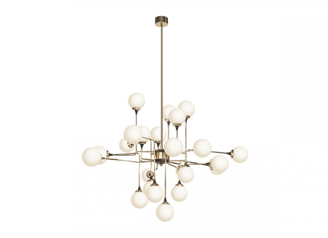 24-light chandelier with structure in brass. Polished brass finishing.
