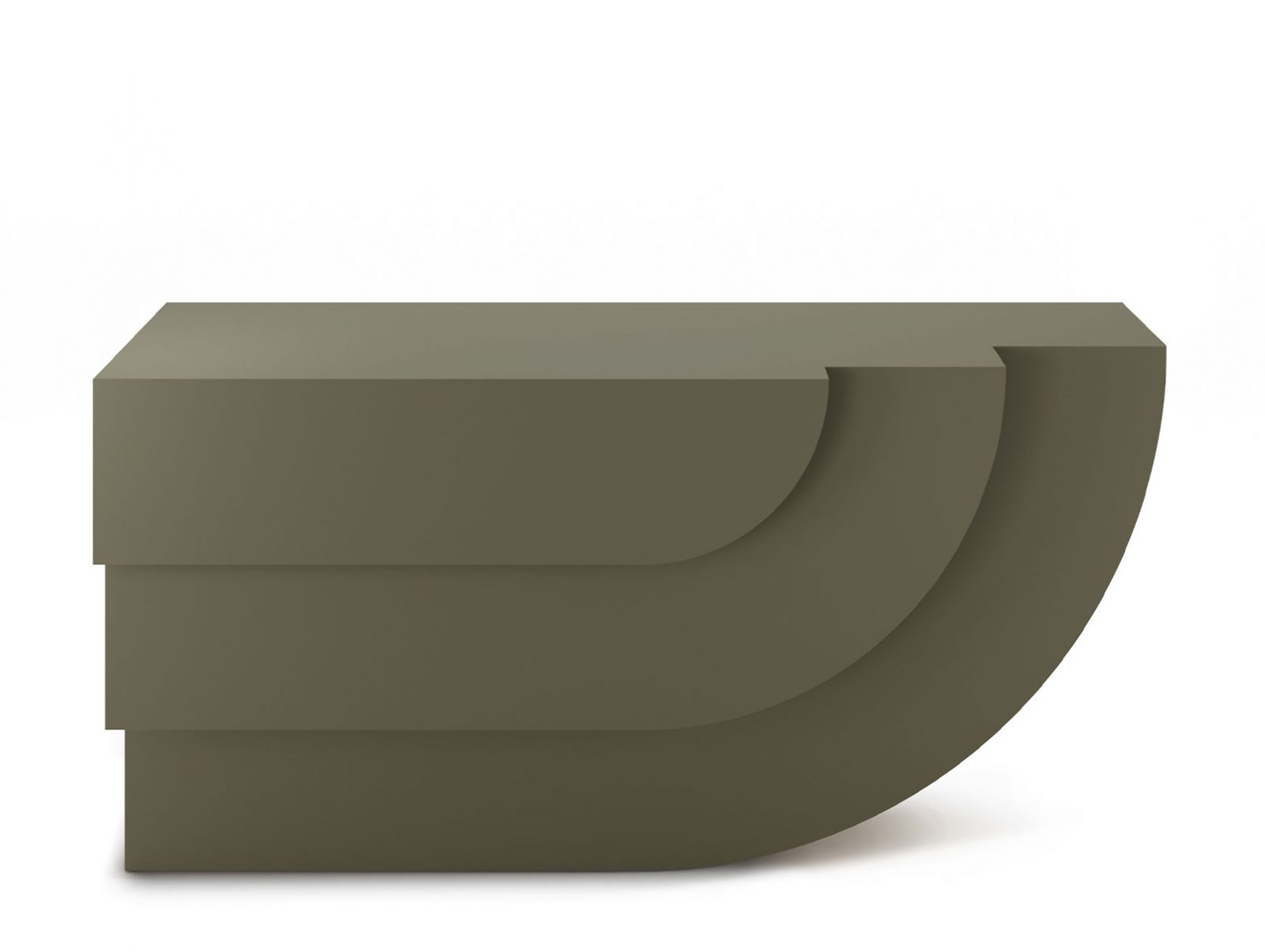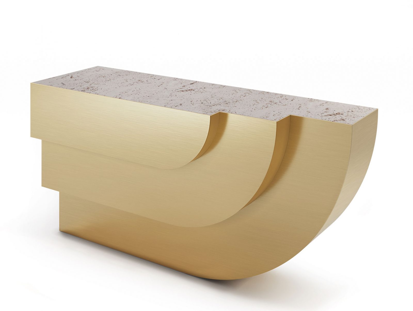 Fossils are testaments of the passing of millennia, geological mementos of the cycles of life. The Fossil Console is a tribute to this natural mechanism of the Earth, with its layered features and coalescence of materials. The design is harmonious and creates an organized atmosphere, standing in a remarkable balance as a standalone statement piece, or next to a wall.