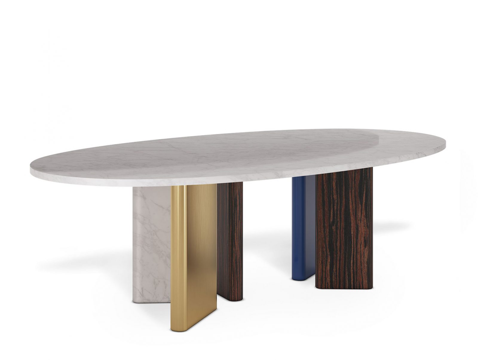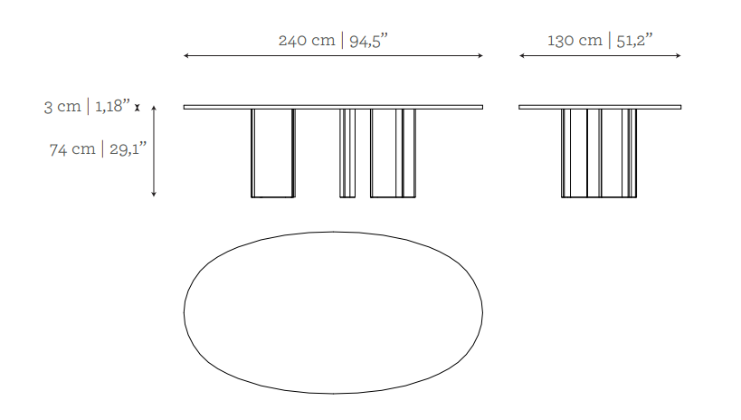 The Peninsula is a functional oval top dining table designed to be the protagonist of a space. Boldly proportioned, the design is different depending on the point of view, and creates a conversation between different materials. Seating six people, the Peninsula is a sculptural presence where life is to be celebrated and experienced in communion.