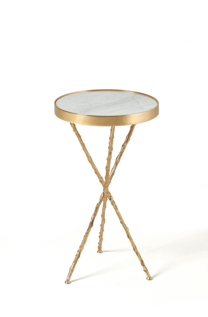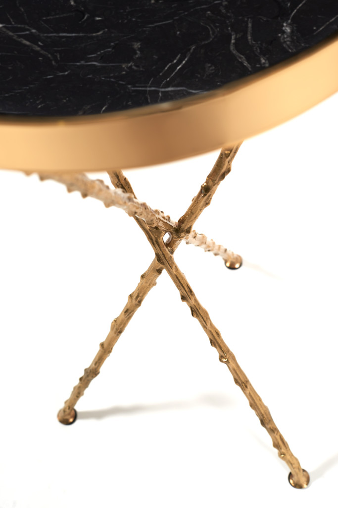 The sculptural legs of this side table are made from immortalized rosebush branches, molded in brass casting. Coupled with a minimalistic and elegant marble top, the Blossom is a poetic handcrafted tribute to Nature’s textures and patterns.