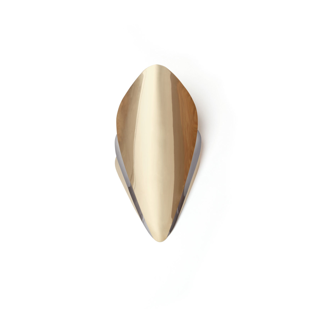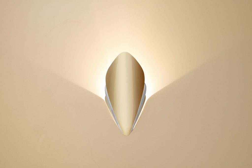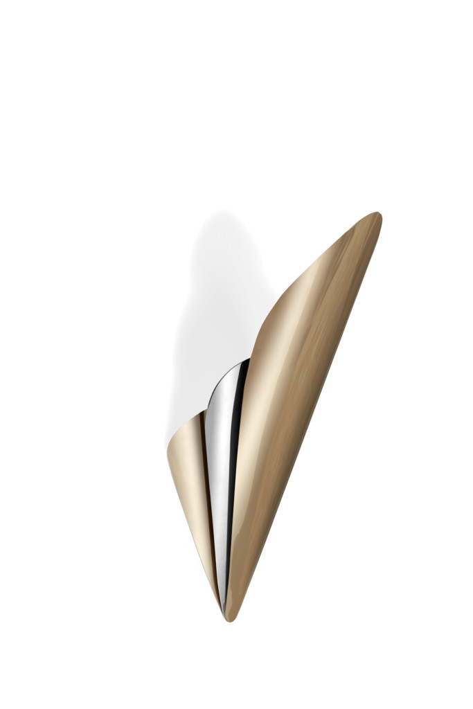 Light is harbored by the Bloom Wall Lamp much like a flower’s core is kept by its leaves. Its layered composition originates a soothing continuity effect between the direction of the light and the shape of the metal lampshades.