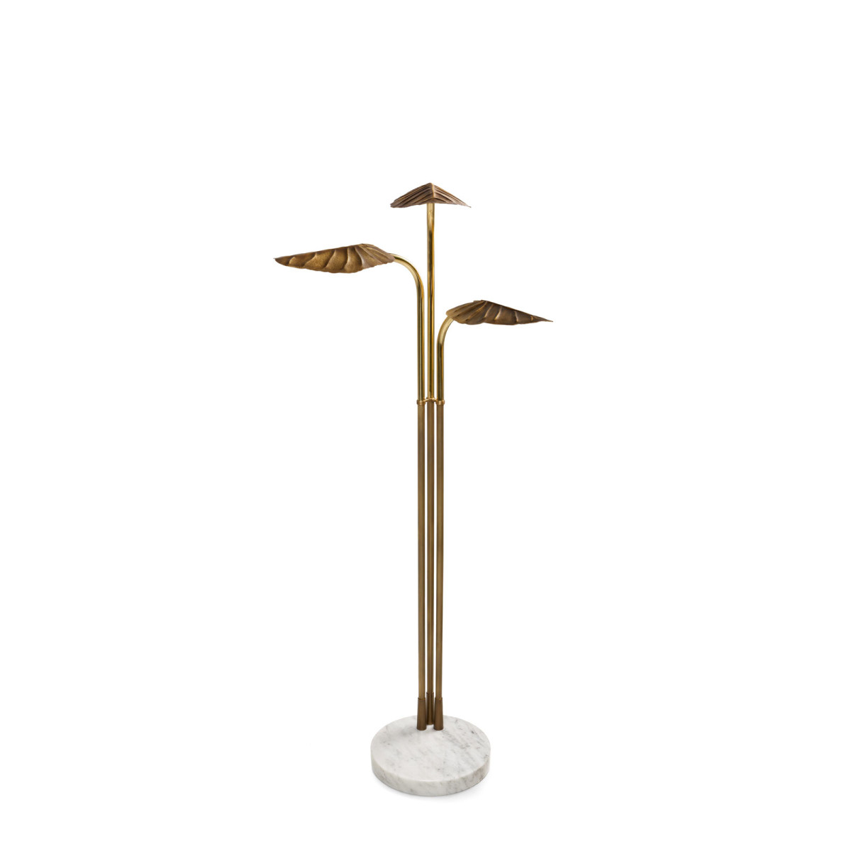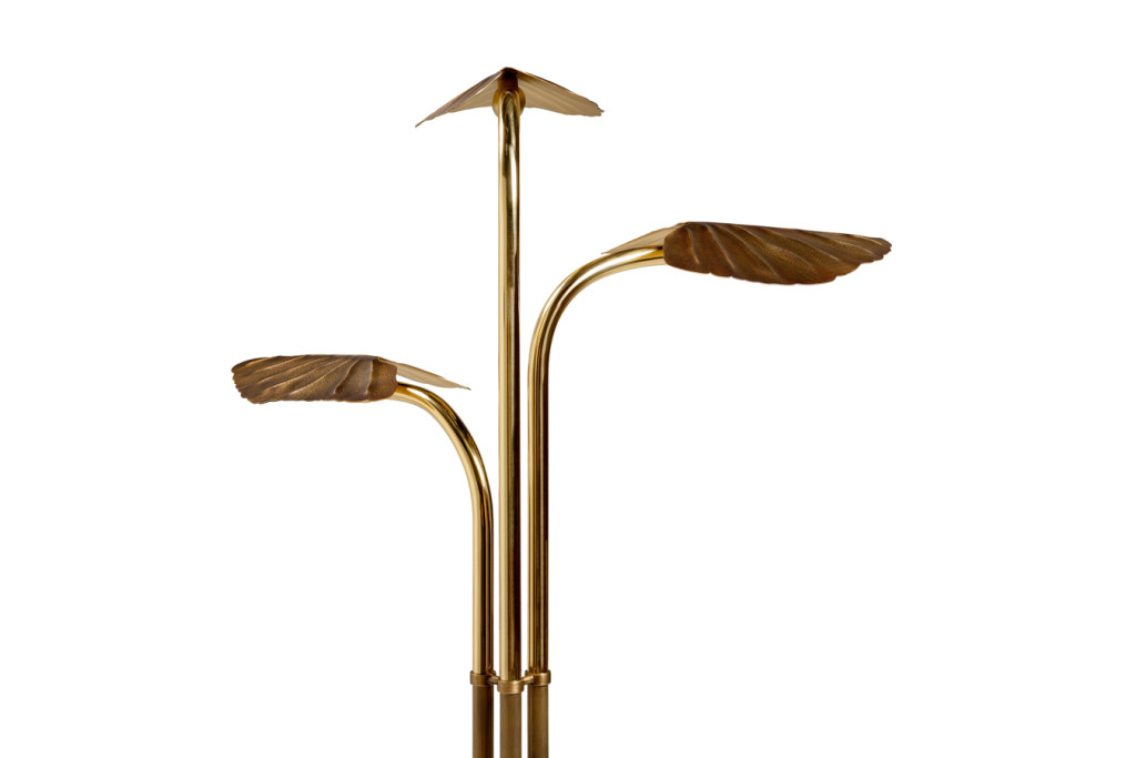 Rising from a marble base, the Lotus springs to life, giving a soft light and a warm bronze light to a living space. The metal leaves have a fine hand crafted chiseled texture with a hammered finish.