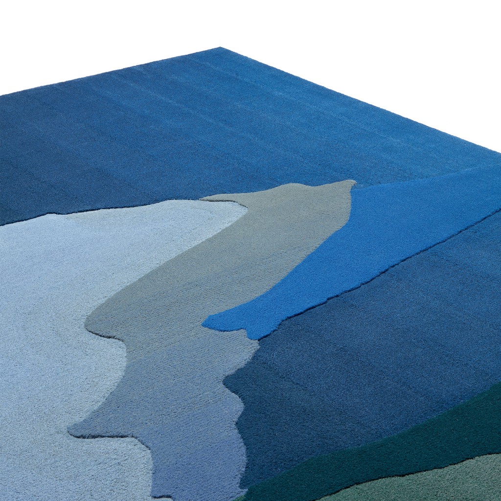 The rise and fall of ocean tides are a reverberation of the combined forces of gravity exerted by the Moon and the Sun and the rotation of the Earth. Their cadence is mesmerizingly captured in the Tides Rug, brewing a sense of calm through the graphical elements.