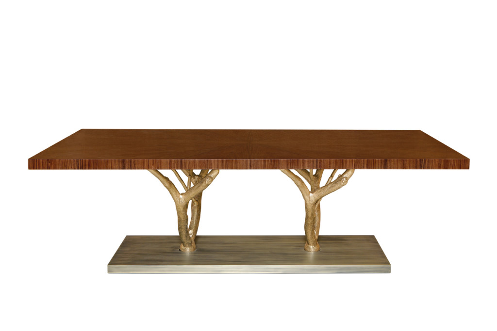 Nature’s forms, materials and textures are immortalized in striking fashion in this piece. The structure is molded in brass casting from magnolia tree branches, providing function to its natural form. The metal base and wood marquetry top deepens the piece’s connection with earthy materials. The softness and ruggedness of the materials is a testament of Nature’s paradox: complex, yet simple.