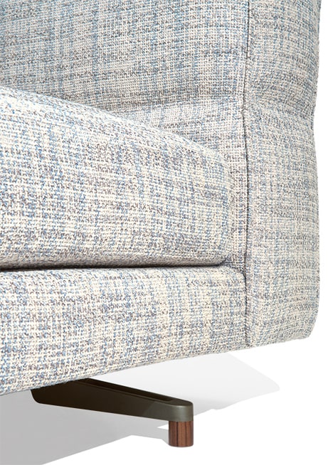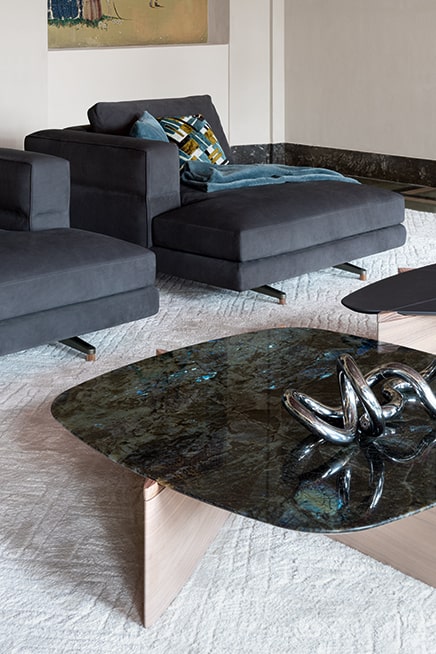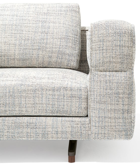 "SoHo is an extremely modern product. It is a light, airy sofa, suspended on aluminium feet. We paid careful attention to the detailing on the armrest, which extends to behind the backrest. It is a sort of modern capitonné, made with a seam that divides, embellishes and holds the armrest in place. SoHo is a versatile product which appeals to a very wide audience—I picture it in a bourgeois Milanese or Parisian apartment, or in an ultra-modern home in Miami or Los Angeles."