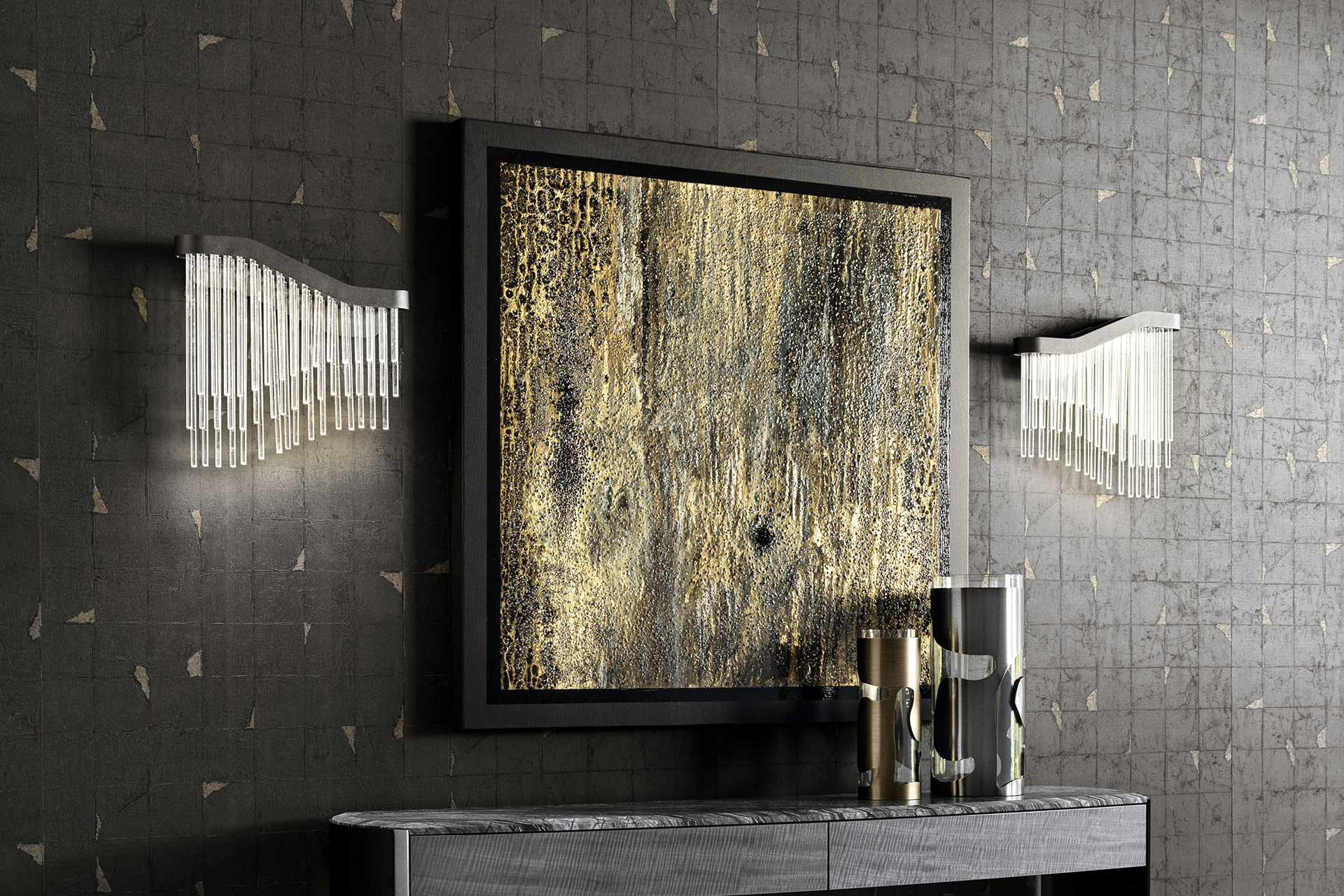 Square painting in wooden structure with “Swarovski” Crystals application.