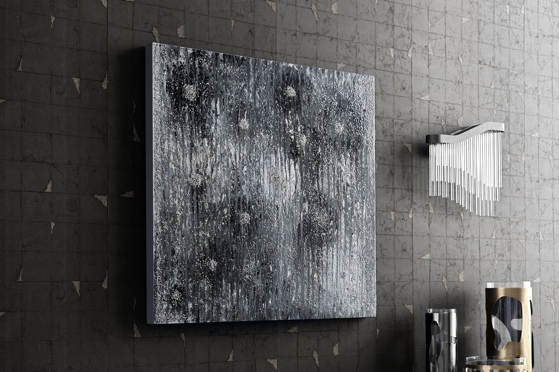 Square painting in wooden structure with “Swarovski” Crystals application.