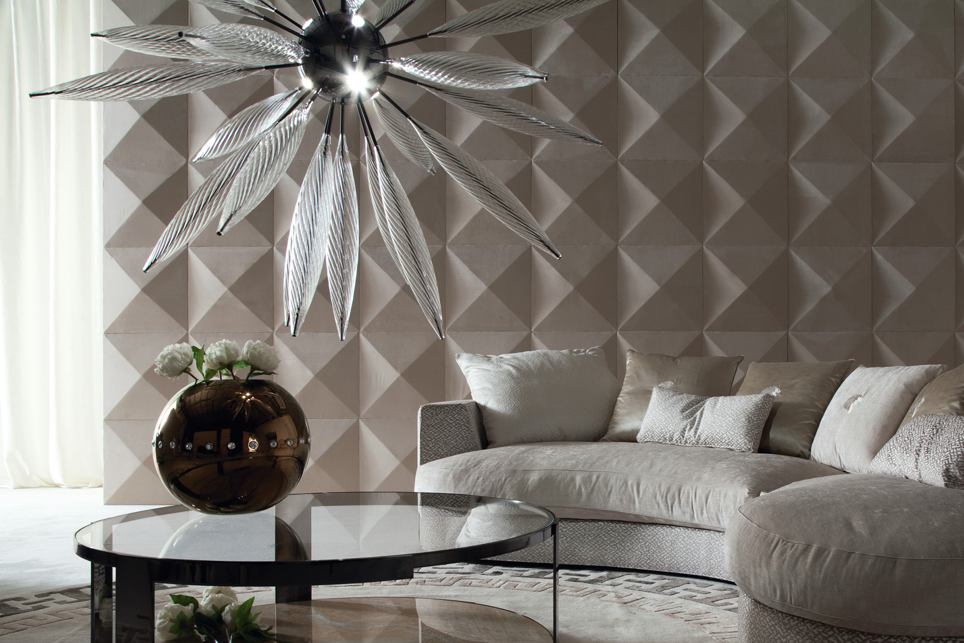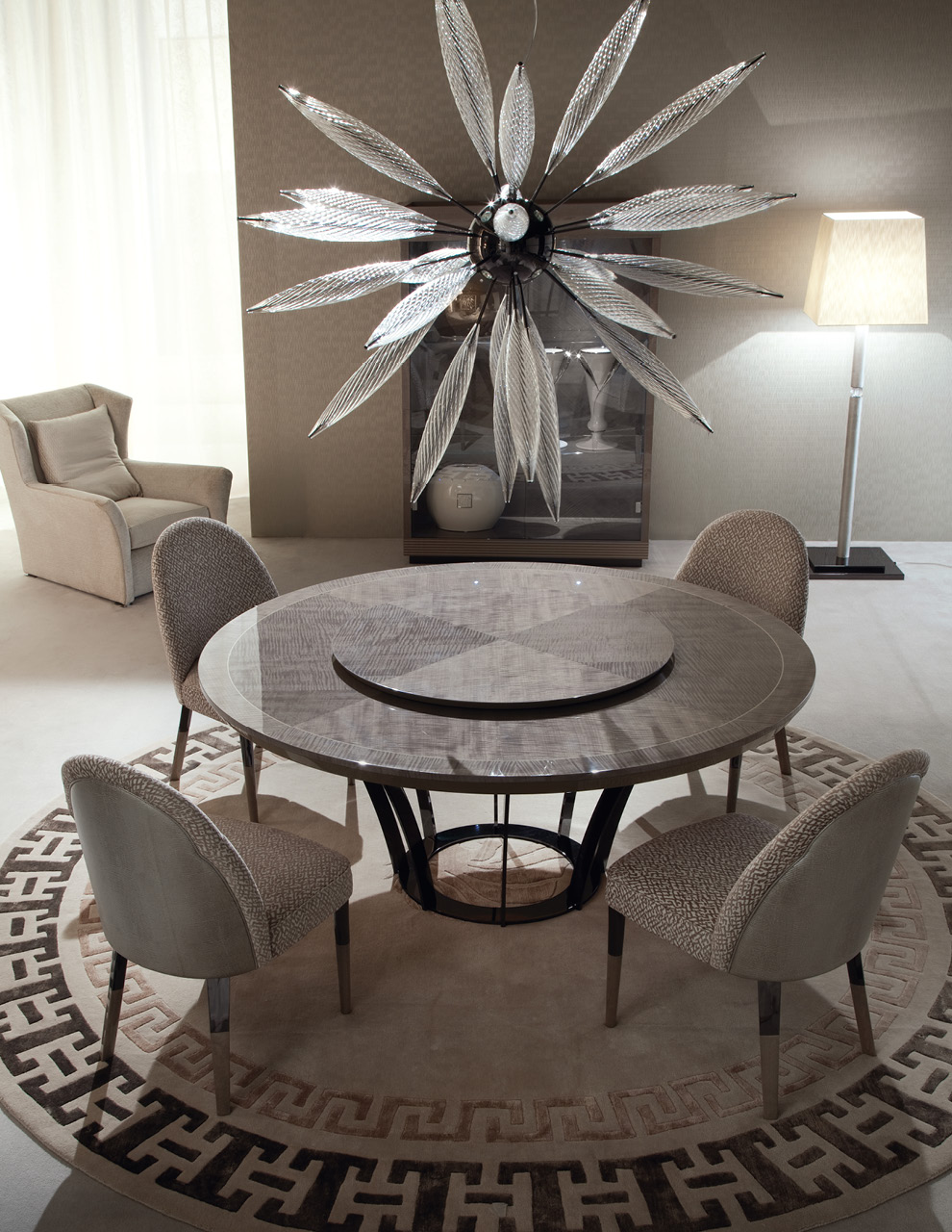 Hand blown glass Venetian "Murano" round chandelier with 8 lights. Composed of 25 Venetian "Murano" clear blow glasses. Center in stainless steel in storm dark grey finish.