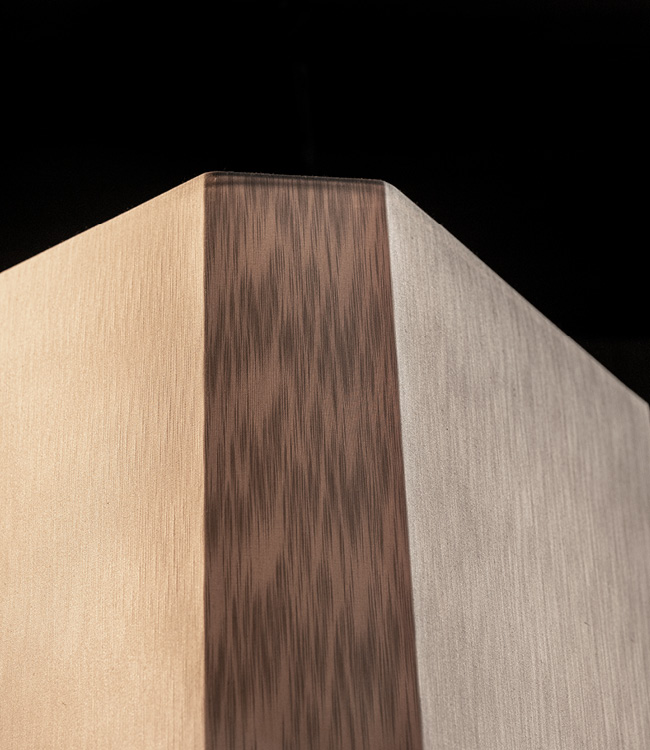 Medium lamp in light gold chrome stainless steel, Shade in white silk.