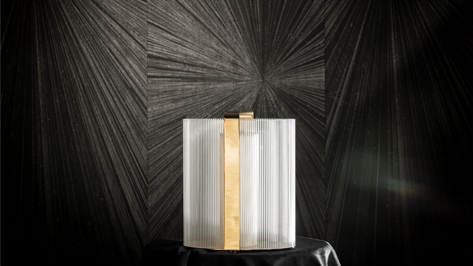 Medium lamp in combination of Venetian streaked "Murano" blown glass and light gold chrome stainless steel structure with Giorgio Collection logo.