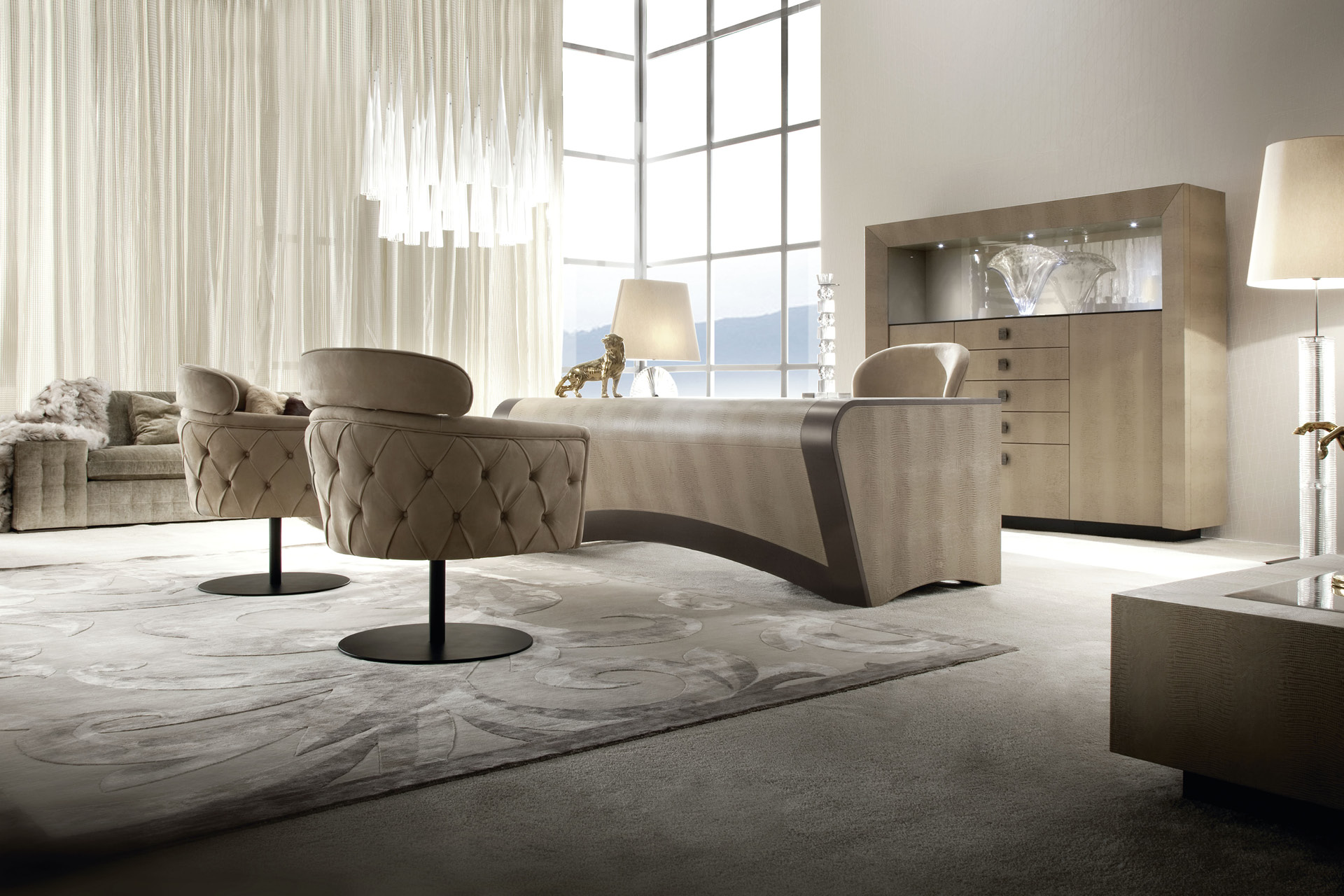 Guest office chair with buttoned back available in leather, nubuk leather, suede fabric, on wheels with adjustable height. Leather needs: mt. 4,50 Nubuk leather needs: mt. 6,00 Fabric needs: mt. 3,00