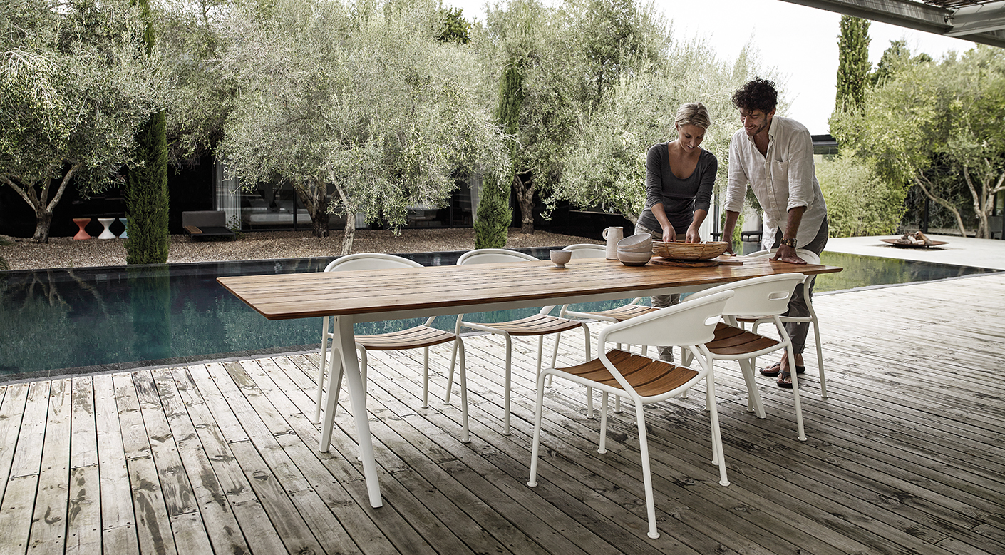 Like the desert sand define the dunes, so the soft curve in the backrest defines the Curve collection. Every minimal line of Curve has been carefully considered to provide optimum comfort while exclusively using materials that are entirely weatherproof and durable. The generous, curved back is cleverly adapted to provide small armrests and Curve’s seats are constructed using broad slats of comfortably dished plantation teak.