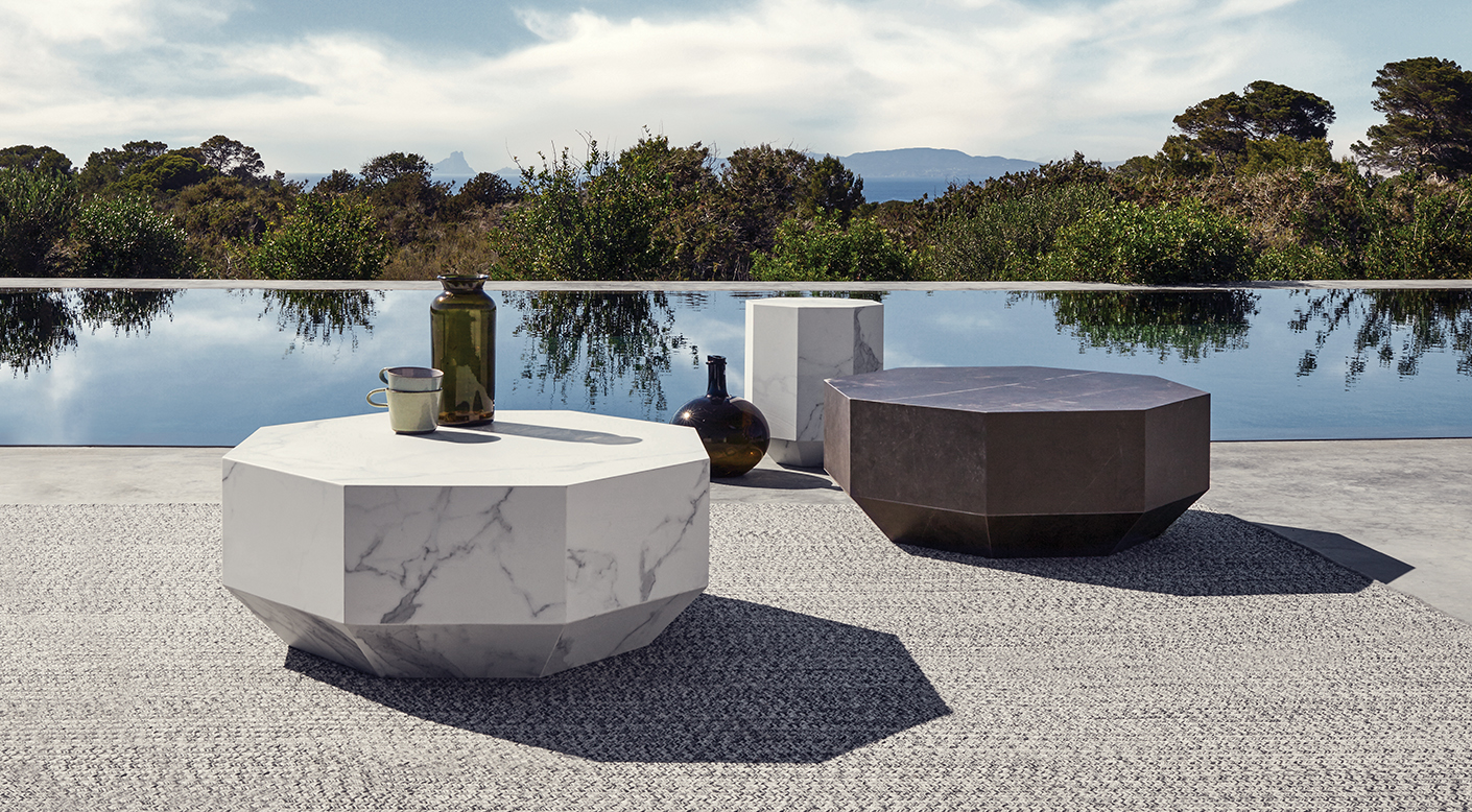 Like remnants of an abandoned temple or fantastically oversized jewellery, the sharp octagonal lines of Gem are hard to miss. Conceived by Danish Designer Henrik Pedersen, Gem tables are the epitome of what Gloster is known for - that little extra. While at a glance these tables are simple, take a moment to consider; a total of 18 panels are carefully cut from tough ceramic sheets, each perfectly bevelled to flawlessly tessellate with its hand-crafted neighbour.