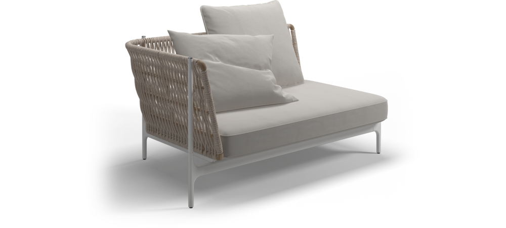 Conceived by noted Danish designer Henrik Pedersen, Grand Weave makes a statement as bold as its name. Inspired by rural cues of hand crafted willow hurdles, textured outdoor rope is woven about a powder coated aluminium frame and deeply comfortable weatherproof cushioning to create an up to date, resilient progression of rustic seating.