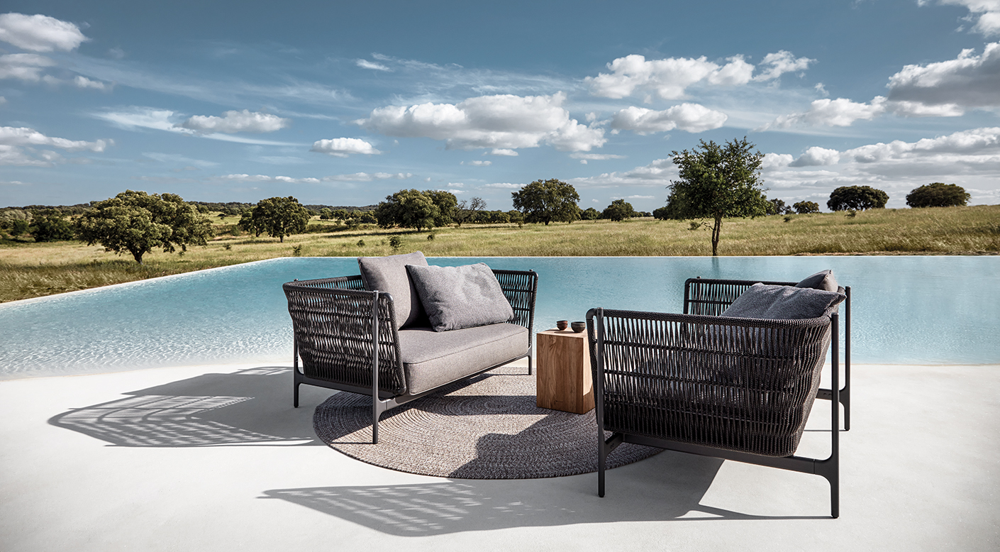 Conceived by noted Danish designer Henrik Pedersen, Grand Weave makes a statement as bold as its name. Inspired by rural cues of hand crafted willow hurdles, textured outdoor rope is woven about a powder coated aluminium frame and deeply comfortable weatherproof cushioning to create an up to date, resilient progression of rustic seating.