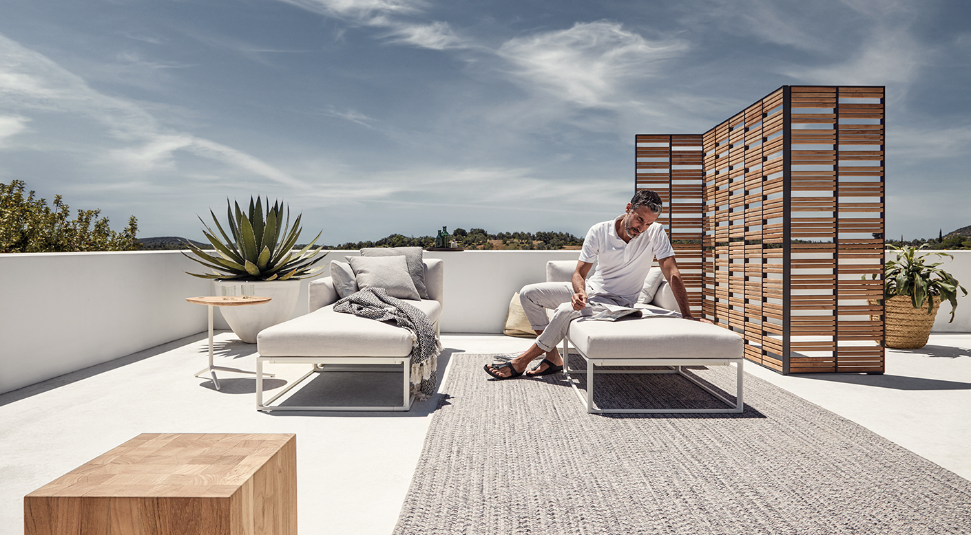 Designed by London based Mark Gabbertas, the sophisticated Maya collection features deceptively simple all-weather upholstery supported by an ultra-slender, low maintenance powder coated aluminium frame. Available in a variety of colours and finishes, the range includes various occasional tables and accessories that allow for a series of living landscapes to be created outdoors.