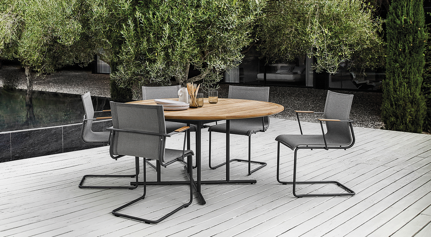 In outdoor situations we often spend more time relaxing and lounging, and when dining we tend to take our time. So why not make the situation as comfortable as possible? With Sway, Danish designer Henrik Pedersen has combined a finely proportioned teak frame with a practical sling seat and back to deliver inherent sprung comfort despite an extremely minimal profile.