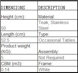 The Trident collection takes its inspiration from classic, clean lines and modern, minimalist design. This retro side table with powder coated aluminium frame and solid, plantation teak top is a delightful and practical accompaniment to any outdoor collection.