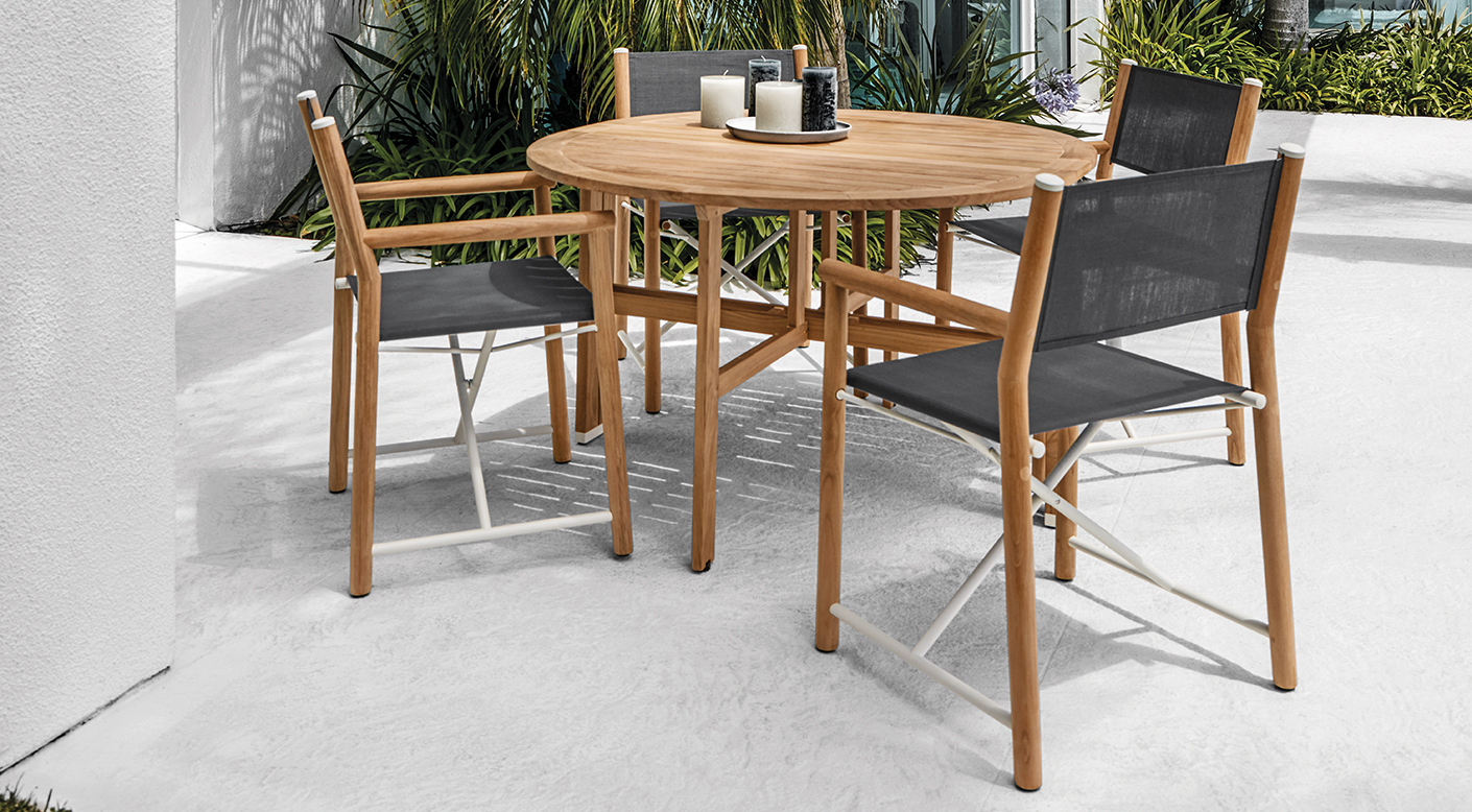 Portable and practical, each Voyager item is designed to quickly assemble for use, then fold or break down for storage or transport. Inspired by another era, and finely detailed with matching features and colours, this Campaign style collection is ideal for bedroom terraces, boat decks, balconies or anywhere space and convenient storage are key.