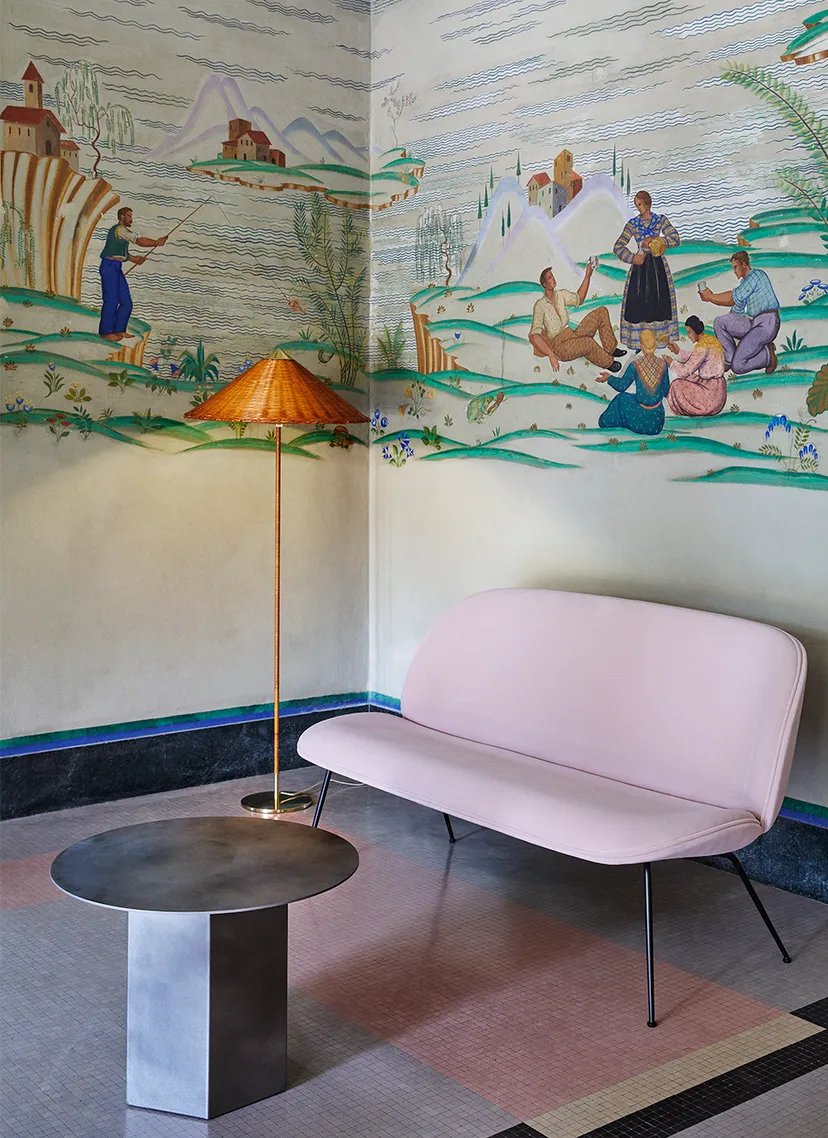 The 9602 Floor Lamp, also known as “Chinese Hat” was designed by Paavo Tynell in 1935 for the hotel Aulanko. Characterised by its elegant and airy lampshade and rattan-covered stem, the 9602 Floor Lamp shows the designer’s limitless imagination and unparalleled ability to create designs of enduring beauty. Adding a playful, exuberant quality to the top, balanced by the more static form of the base, the 9602 Floor Lamp is perfectly suited for creating a gentle ambient light in the domestic living room.