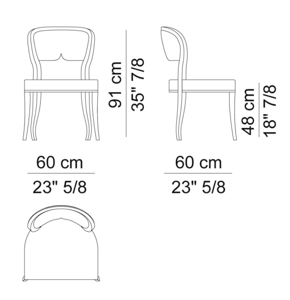 Dining chair with solid beech wood structure. Seat with elastic straps. Polyurethane foam and polyester fiber lining. Non-removable cover. Gros grain piping.