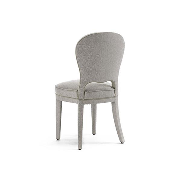 Dining chair with solid beech wood structure. Plywood seat. Polyurethane foam and polyester fiber lining. Non-removable cover. Gros grain piping.