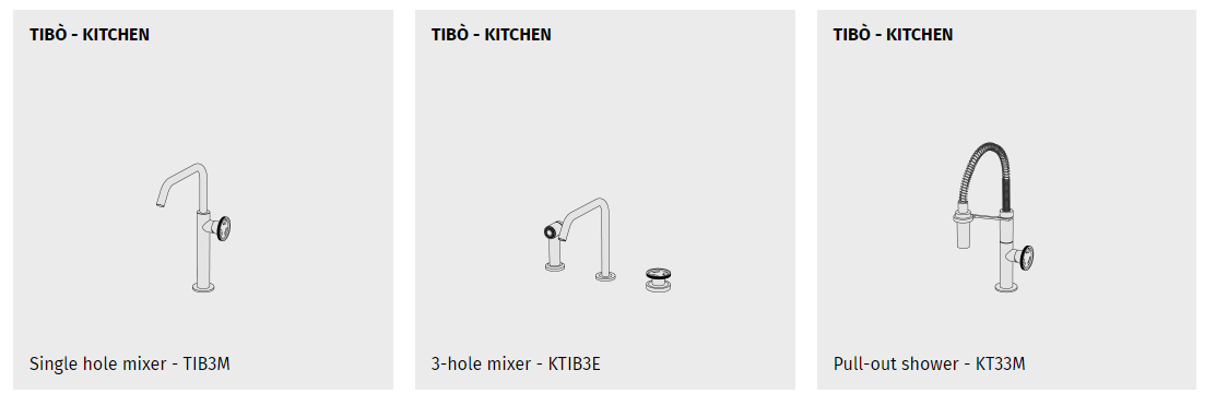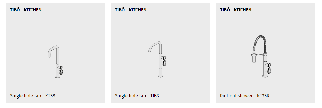 The best solution for you and for your kitchen. Taps and single-lever mixers, with two or three holes, wall-mounted, retractable and with pull-out shower head. Chrome-plated high quality ltalian brass taps, functional solutions made precious by a unique design.