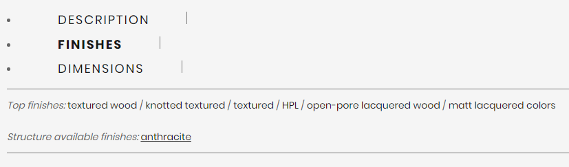 Open-pore anthracite 260 lacquered base, HPL 11/12 top