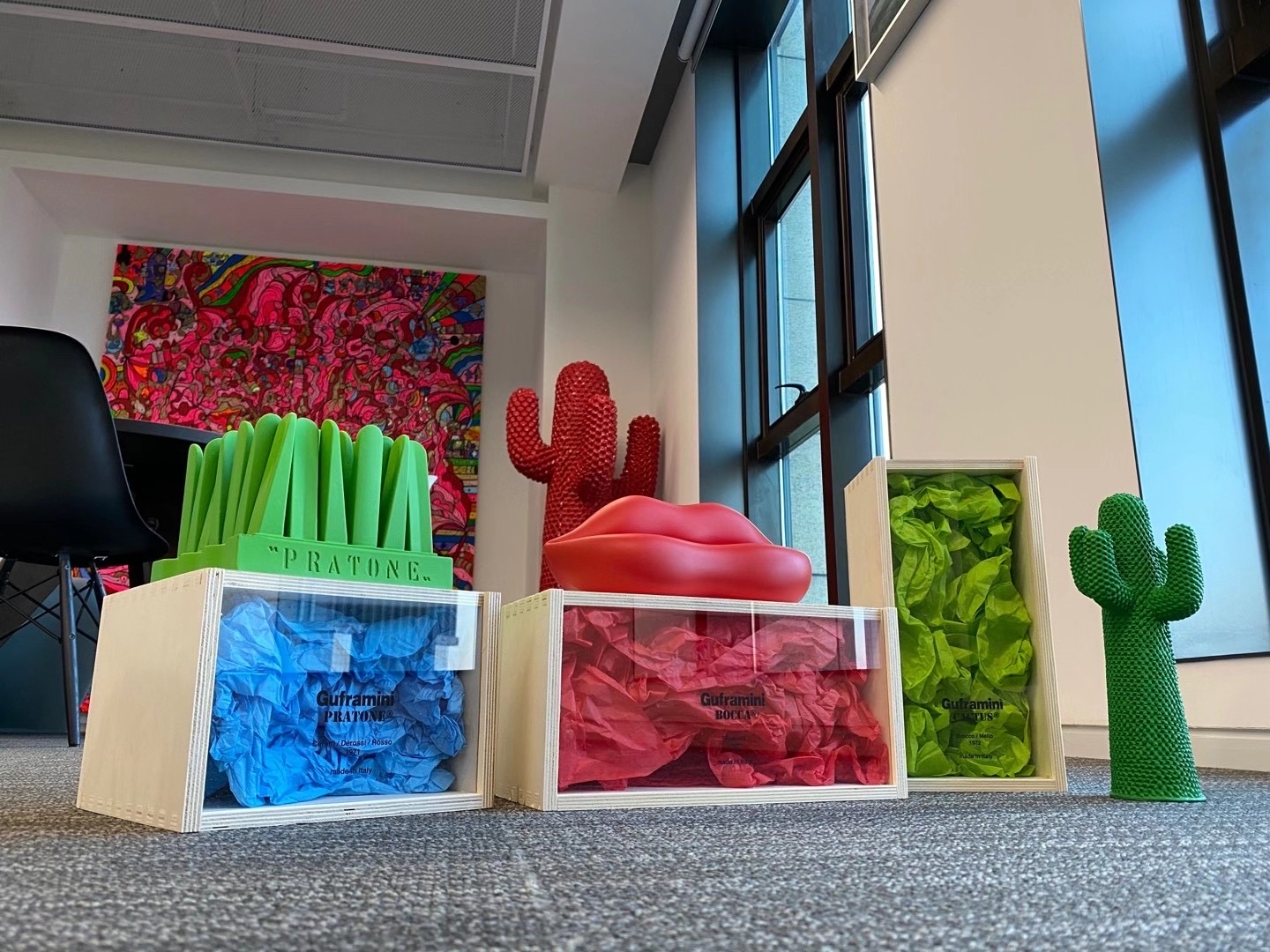 Entrate nell'afascinante mondo di GUFRAMlNl, una straordinariacollezione che condensa la magia e il fascino intramontabile dellepi?o celebri opere di Gufram in intricate forme in miniatura.Realizzati con straordinaria cura in scala l:8, questi pezzi, seppurpiccoli, sono riccamente dettagliati e costituiscono unatestimonianza eloquente dell'ineguagliabile abilit?à artistica e dellaprofondaimmaginazione che caratterizzano il design italiano.