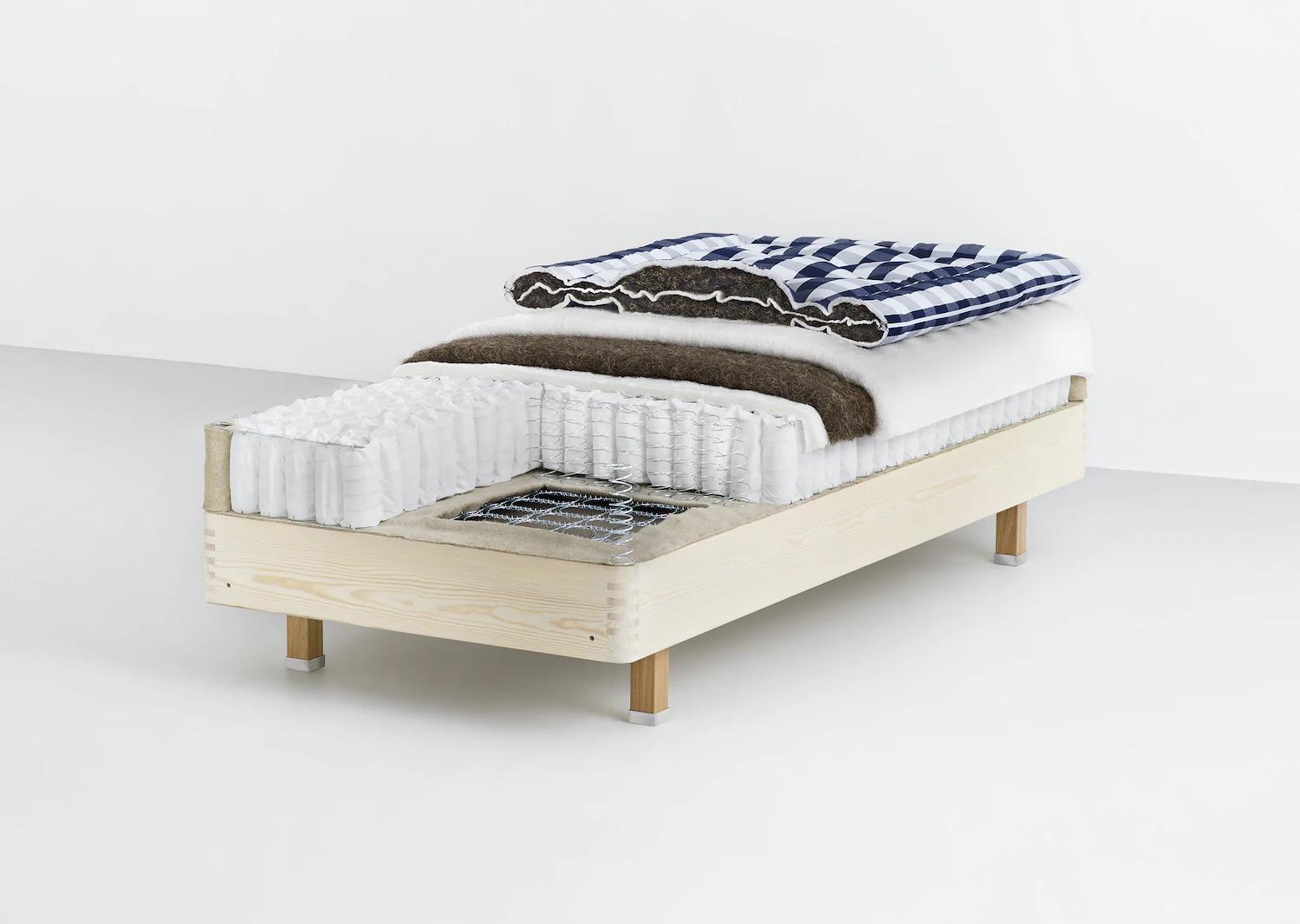 承雙層彈簧系統(tǒng),15層精心挑選的天然材質(zhì),整體包裹置于生長(zhǎng)緩慢的瑞典北部松樹木制框架上,結(jié)實(shí)耐用。