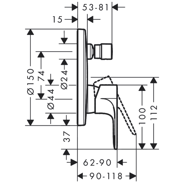 centre distance: 153 mm