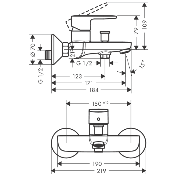 flow rate for bath spout at 3 bar: 22,5 l/min