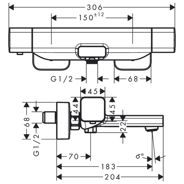 centre distance: 150 ± 12 mm