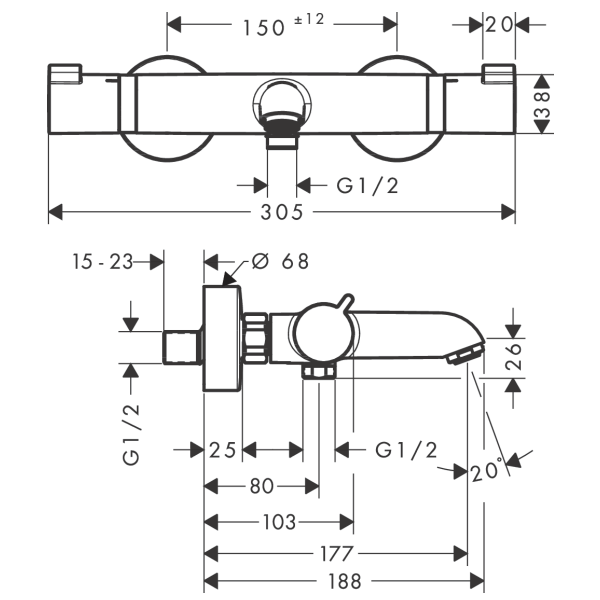 centre distance: 150 ± 12 mm