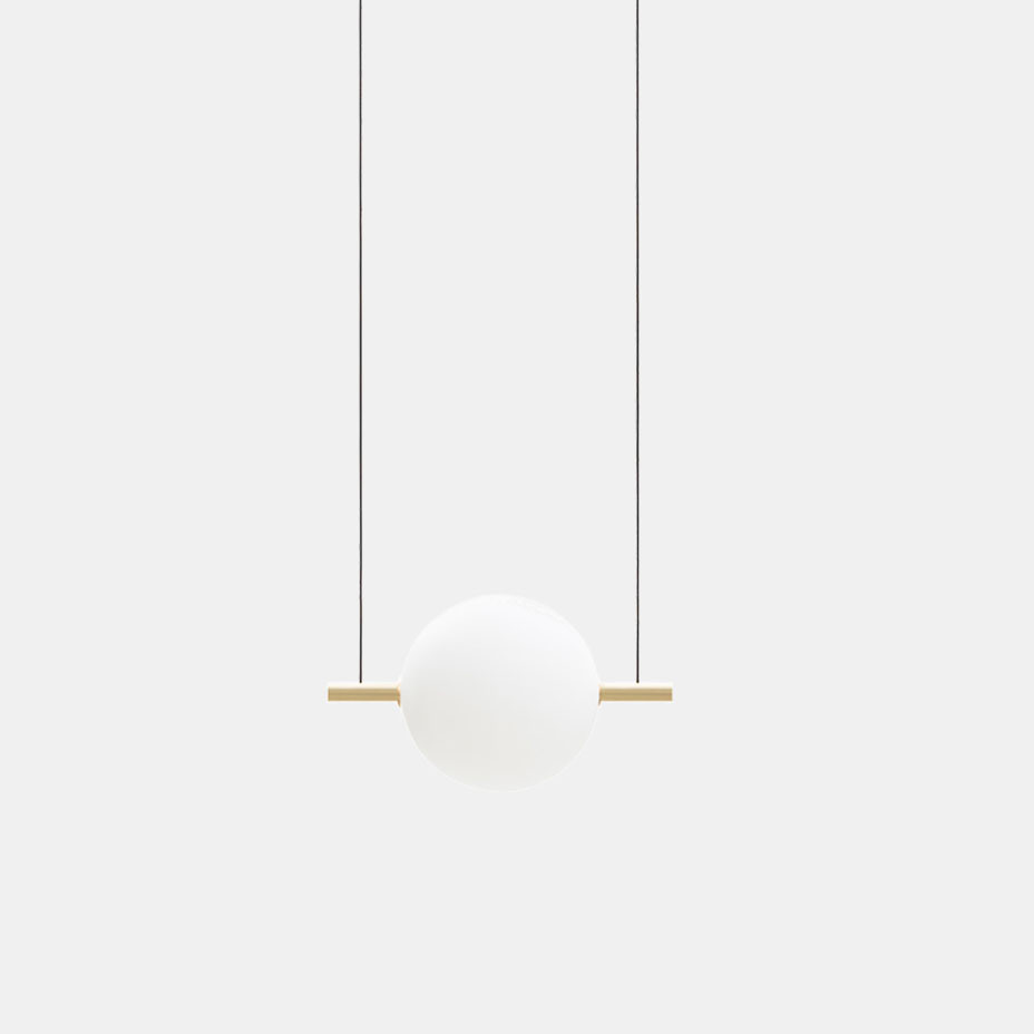 Suggestiva fusione di vetro e ottone, ALMA si inserisce con discrezione in ambienti contemporanei lasciando un segno di luce intenso dato dalla fonte luminosa a led dimmerabile. La geometria bilanciata conferisce un senso di stabilità alleggerito dalle sfere luminose sospese. Il risultato finale è un oggetto iconico con un’aura immateriale. ALMA è disponibile con finitura ottone spazzolato (cod. ON) e nero (cod. NN) in 5 modelli a sospensione.