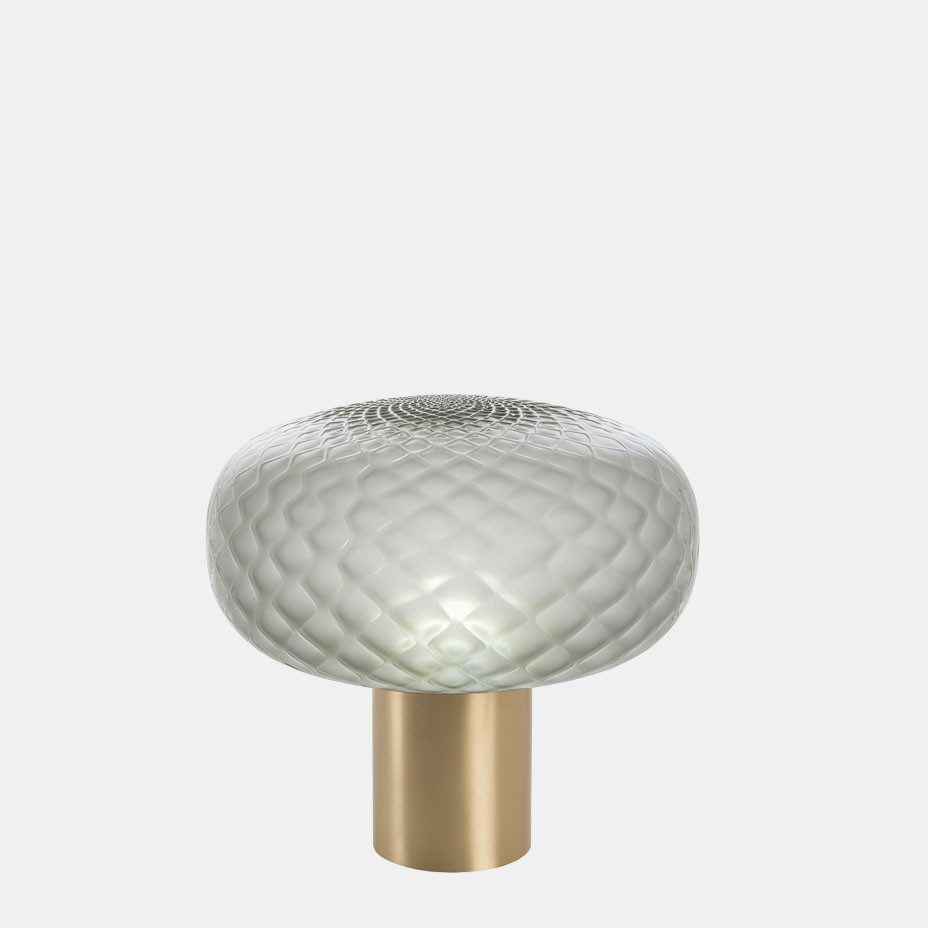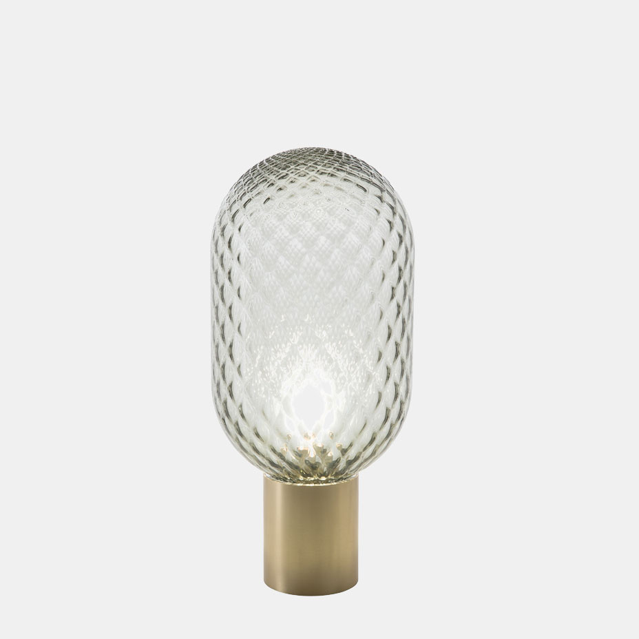 ricorda la preziosità delle bottiglie di profumo antiche e la forma dei diffusori orientali di essenze. A seconda del vetro e della fonte luminosa prescelta, l’effetto può essere più ovattato o sensuale. La magia dell’oggetto si sprigiona sia dal pezzo singolo che dalla combinazioni di più varianti. La linea si compone di lampade a sospensione e da tavolo disponibili sia con luce a LED che alogena. Il vetro è grigio (G) o rosa (P) con lavorazione Balloton anche in versione satinata (S).