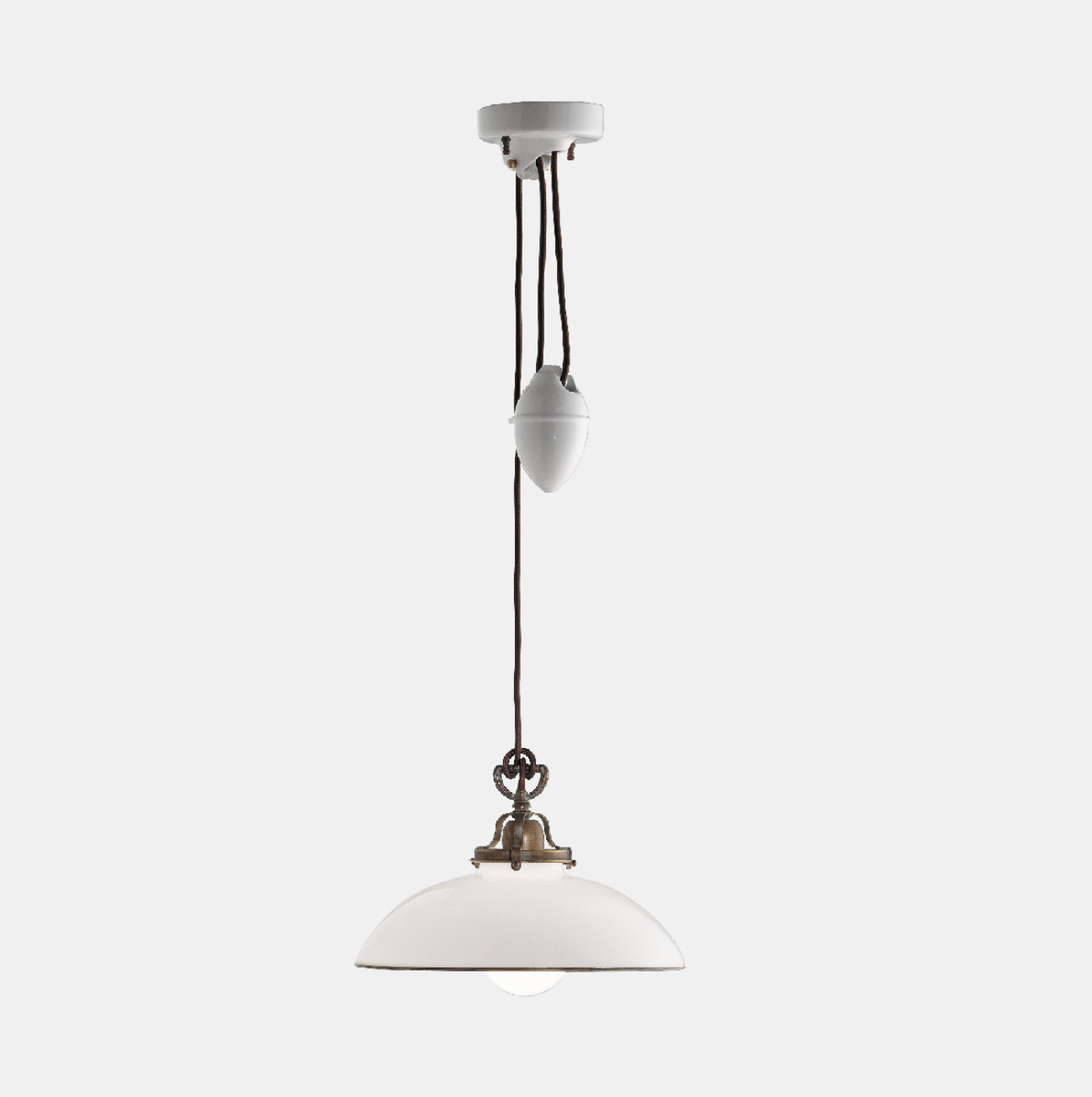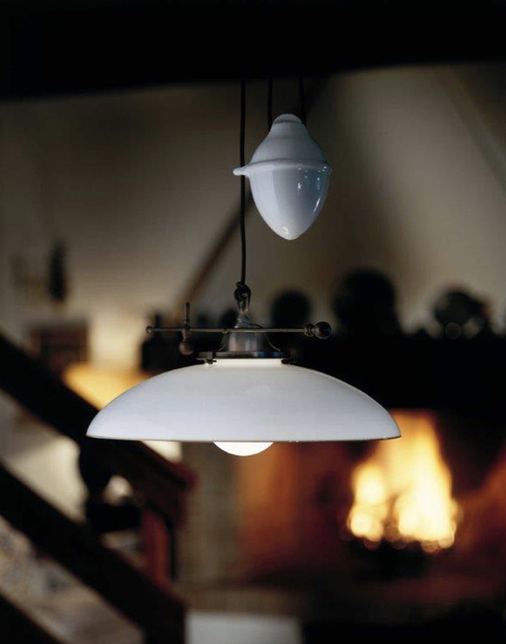 Linguaggio country internazionale e tradizione millenaria del vetro di Murano, grande espressione del made in Italy, si fondono alla perfezione nella collezione Country. Prodotte in ottone e vetro soffiato bianco, queste lampade sono peculiarmente caratterizzate dal bordo ribruciato marrone.