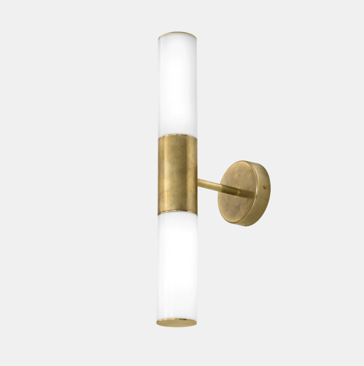 La collezione, disponibile con struttura in ottone naturale (cod. ONB) o ottone anticato (cod. OOB) e vetro borosilicato, è composta da sospensione, piantana, lampada tavolo e applique.