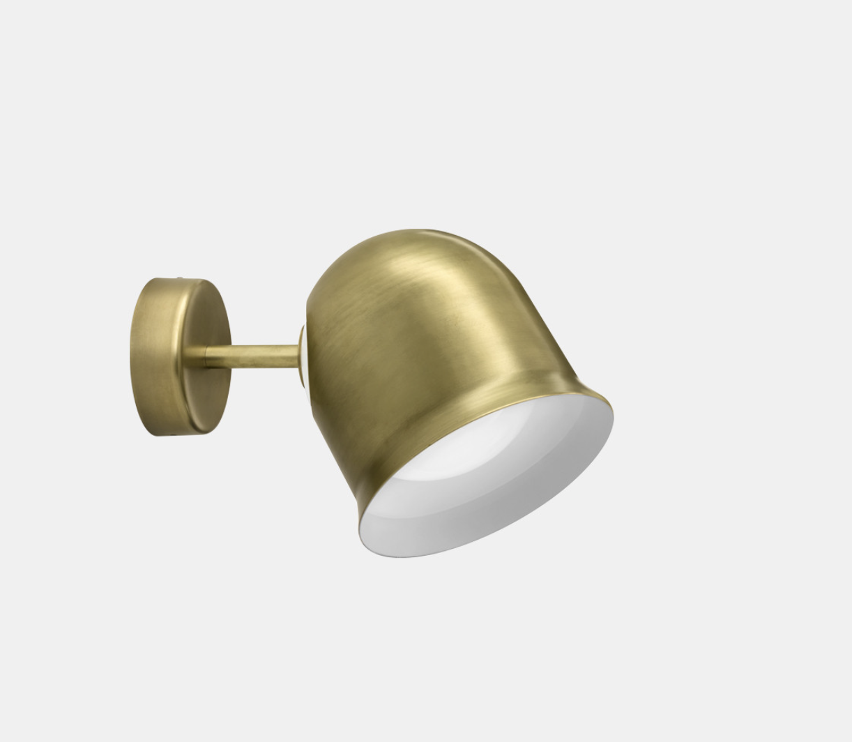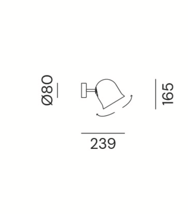La forma della campana, depurata fino ad arrivare a volumi geometrici semplici, è utilizzata come corpo diffusore, realizzato tramite un’unica sapiente tornitura in metallo. Il volume così generato si posa su una sfera luminosa in vetro opalino, e grazie alla sua forma può essere orientato in qualsiasi direzione con un gesto semplice ed intuitivo.