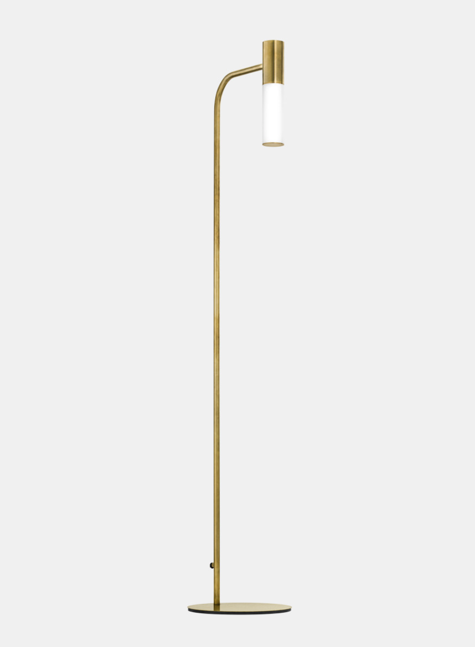 La collezione, disponibile con struttura in ottone naturale (ONB) o ottone anticato (OOB) e vetro borosilicato, è composta da sospensione, piantana, lampada tavolo e applique.