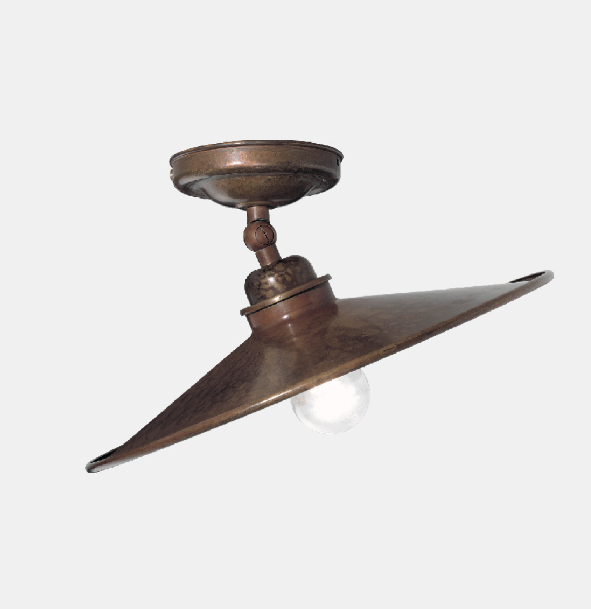 Un voluto richiamo all’arredo tipico di cantine e laboratori artigianali connota le lampade della collezione Cantina. Le forme essenziali sono la nota distintiva di ogni lampada, caratterizzata da un piatto levigato ottone o in ferro anticato. Prodotti moderni e versatili, che ben si inseriscono in differenti contesti. Disponibili in ottone (OO) o ferro (FF).