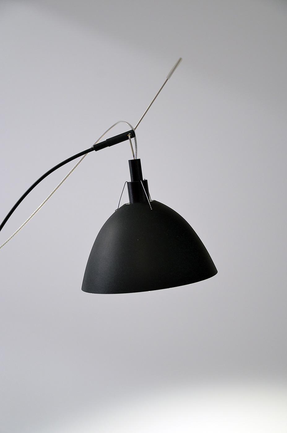 The body of the lamp serves as bookend. The flexible metal arm allows variable adjustment of the lamp head. Anodised aluminium in black or silver, metal.